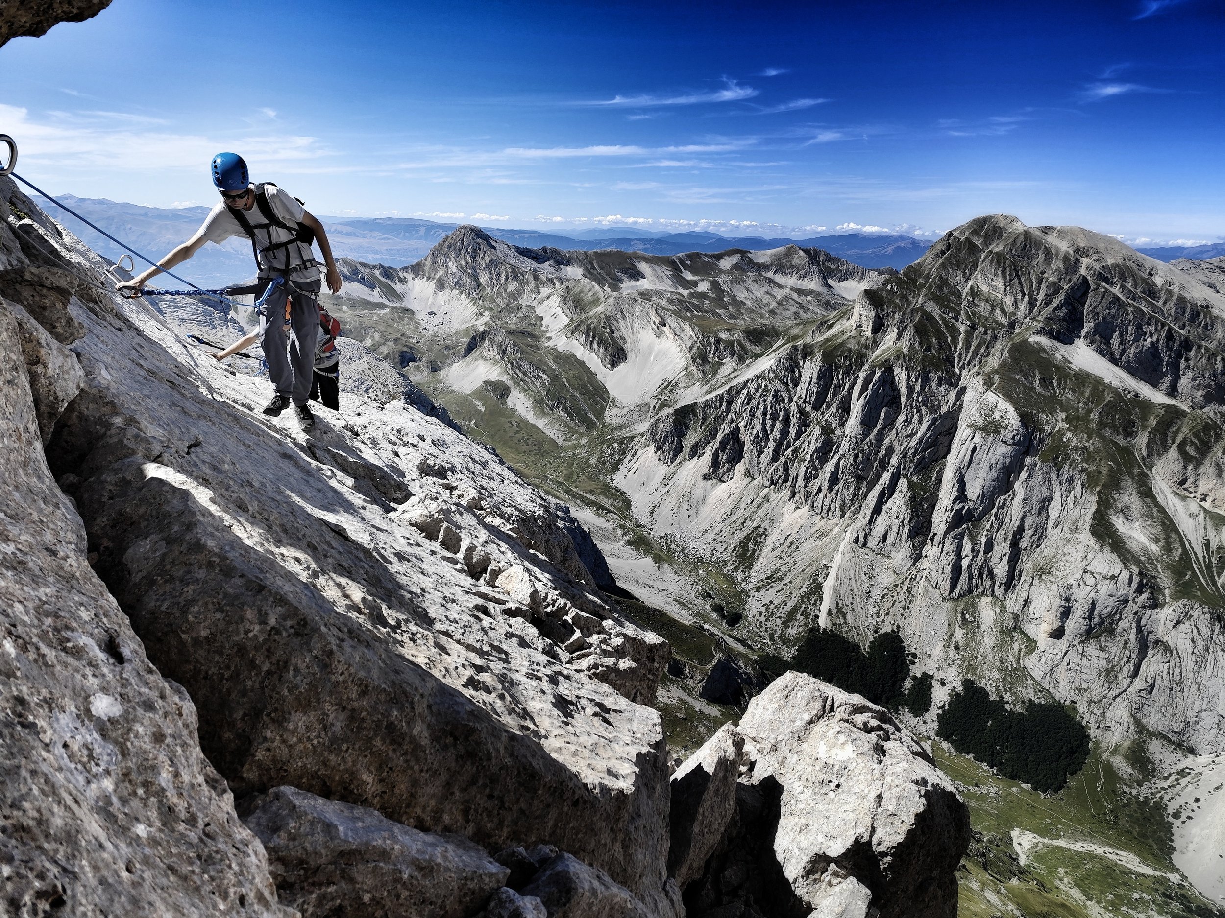 Una delle ferrate più emozionanti del Gran Sasso: placche di roccia compatte, guglie dalle forme bizzarre, passaggi esposti e panorami senza eguali; sicuramente un’esperienza che non si dimentica facilmente.